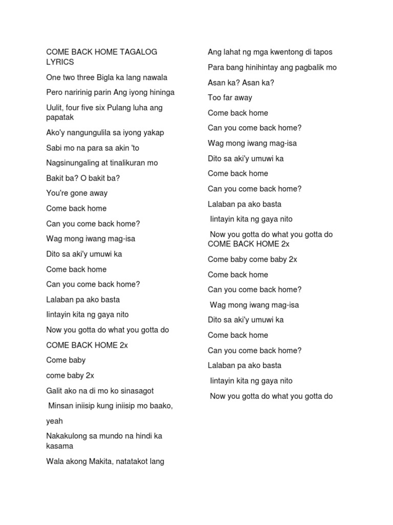 2ne1 Come Back Home Unplugged English Version Cmkc Youtube from i.ytimg.com Come back come back home. Come back, i'd trade it all just to come back home. The repeated, sweet whisper after drinking you.